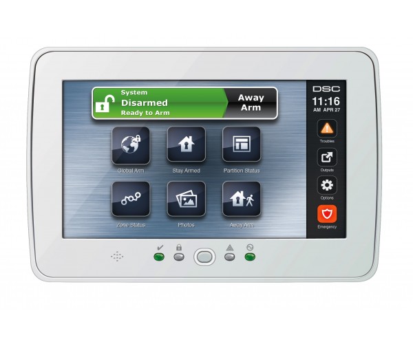 The PowerSeries TouchScreen keypad (PTK5507W - White) delivers an easy interactive way to manage and control security systems - at the touch of a finger. The TouchScreen keypad – the nerve centre of the security system – combines the keypad functionality users and installers have come to expect with an intuitive interface. Seamlessly integrated with PowerSeries security systems, the sleek, contemporary and modern look is valued by the homeowners; installers will appreciate the easy installation and rogramming features they have come to expect from DSC products.